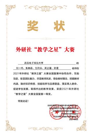 (通讯员:郎曼)近日,2021年外研社“教学之星”大赛全国复赛结果揭晓。公司由英国365集团公司英语系教师刘一鸣、朱琳菲、任利华、周正履、郎曼组成的教学团队荣获本届大赛英语类专业组一等奖。