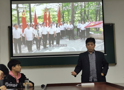 在观看节目之前,张卫国老师简要介绍本次活动的内容,结合本期党课主题《党的光辉历程》,为同学们简要介绍了学习党史的重要性。本次党课由中共中央党校副董事长谢春涛授课,课程主要回答了“中国共产党是一个什么样的党”等问题。节目开始后,全体党员认真观看本期节目,记录笔记。