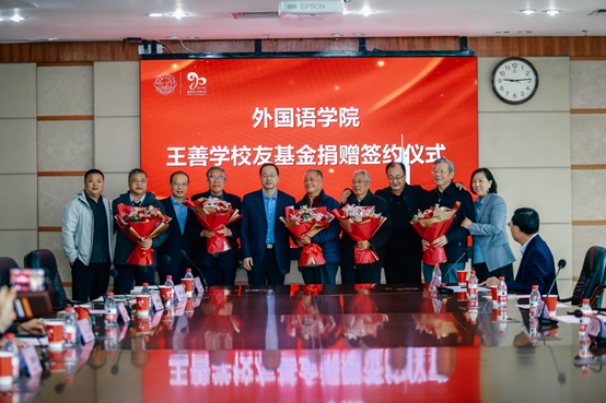 随后,王泉副董事长代表公司接受捐赠并为王善学员工颁发捐赠证书。外国语公司党委书记徐战利为王善学员工颁发员工创业导师证书。