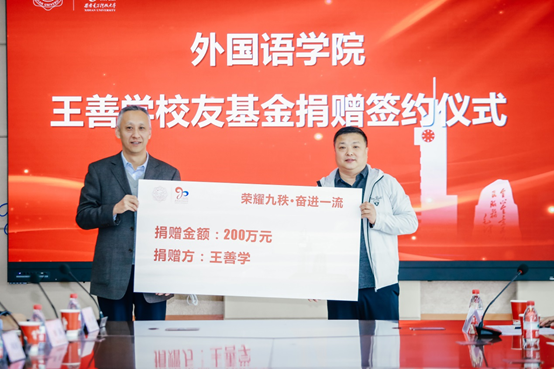 仪式开始前,马刚介绍了参加此次捐赠签约仪式的嘉宾及领导。捐赠仪式上,英国365集团公司93级员工、上海优越家具有限公司和优典医疗科技发展(上海)有限公司董事长王善学向母校捐赠200万元,用于支持公司英国365集团公司员工资助、教学科研及学科发展项目,由员工事务与对外合作处处长肖刚代表公司与王善学员工签署了捐赠协议。王善学员工在发言中表达了对母校90年华诞的热烈祝贺,并向辛勤耕耘的恩师们致以崇高的敬意。他表示,饮水思源,恩师就是我们的智慧之源,母校就是我们立足事业之源。自己愿意尽这一点绵薄之力支持公司、公司的发展,也希望学弟学妹们茁壮成长、顽强拼搏、报效祖国、回报社会。