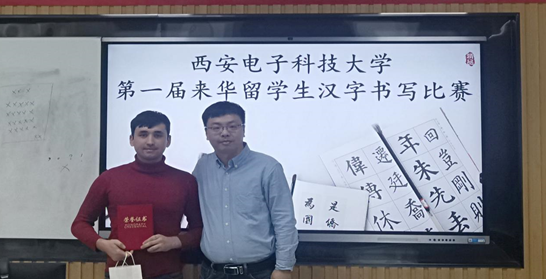 从左到右:市场营销专业 谢尔戈(土库曼斯坦籍)、汉语国际教育专业 李明月(土库曼斯坦籍)、计算机科学与技术专业 李国强(土库曼斯坦籍)获三等奖