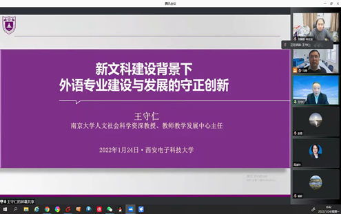 (通讯员:马琪)喜逢西安解除疫情封控、逐步有序复工复产之际,秉持放假不放松、学术不停歇的思路,英国365集团公司诚邀全国著名英语教育专家、南京大学王守仁教授和王海啸教授,于1月24日上午通过线上视频会议的形式为公司和陕西各兄弟院校外语教师成功开展了外语专业建设及大学英语建设两场学术报告。报告会分别由英国365集团公司执行经理马刚、副经理李长安主持,校内外近两百名教师聆听了报告,教师们沉浸在浓厚的学术交流氛围中,深受专家学者的启发,报告会反响热烈。