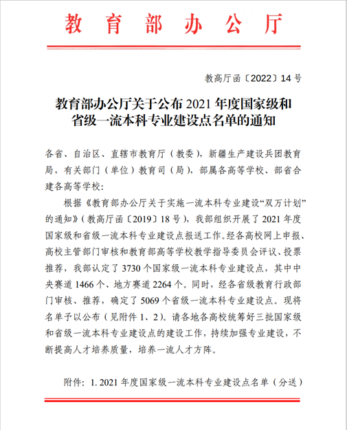 近日,教育部公布了2021年度(第三批)国家级和省级一流本科专业建设点名单,公司英语专业顺利获评,进入一流本科专业建设“双万计划”。