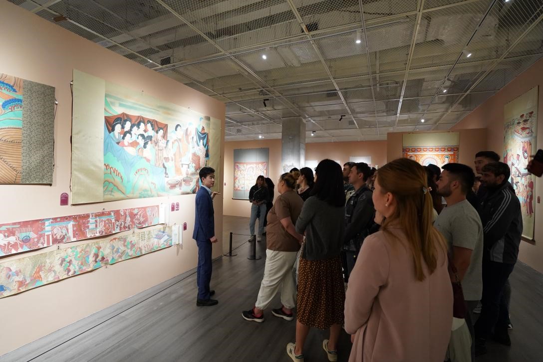 会后,在工作人员的带领并讲解下,师生一同观看了敦煌壁画艺术展等多个展览,生动地再现了课堂内容。通过此次实践基地的建立,不仅能够为职工提供多元的实践环境与丰富的实践机会,而且有助于馆校合作进一步加强,最大程度地共建、共享、共学,深化中国与中亚文明交流互鉴,为弘扬中国传统文化、繁荣陕西文化事业作出贡献。