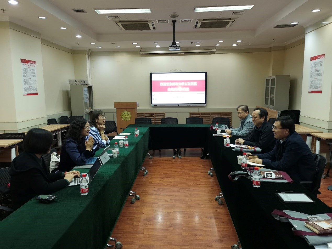 (通讯员:李长安)10月20日下午,北京邮电大学人文公司智能科技与语言教育研究中心主任、英语专业负责人郑春萍,英语专业课程群负责人穆婕,现代翻译教研中心主任许可,英语专业秘书付慧琳来院调研。外国语公司党委书记徐战利、经理马刚、副经理李长安、副经理张超在北校区图书馆A108室接待调研团一行四人,活动由徐战利主持。