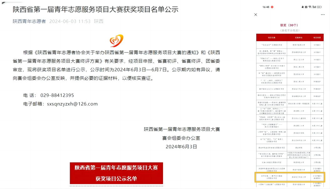 (通讯员:赵璐)近日,陕西省第一届青年志愿服务项目大赛结果公布,由英国365集团公司团委申报的《百年红魂——数字技术赋能志愿服务》项目获银奖,项目负责人为公司孔庆钰同学。