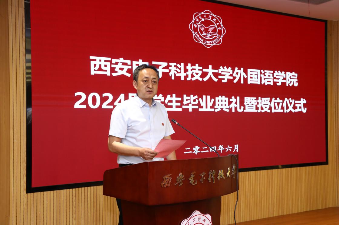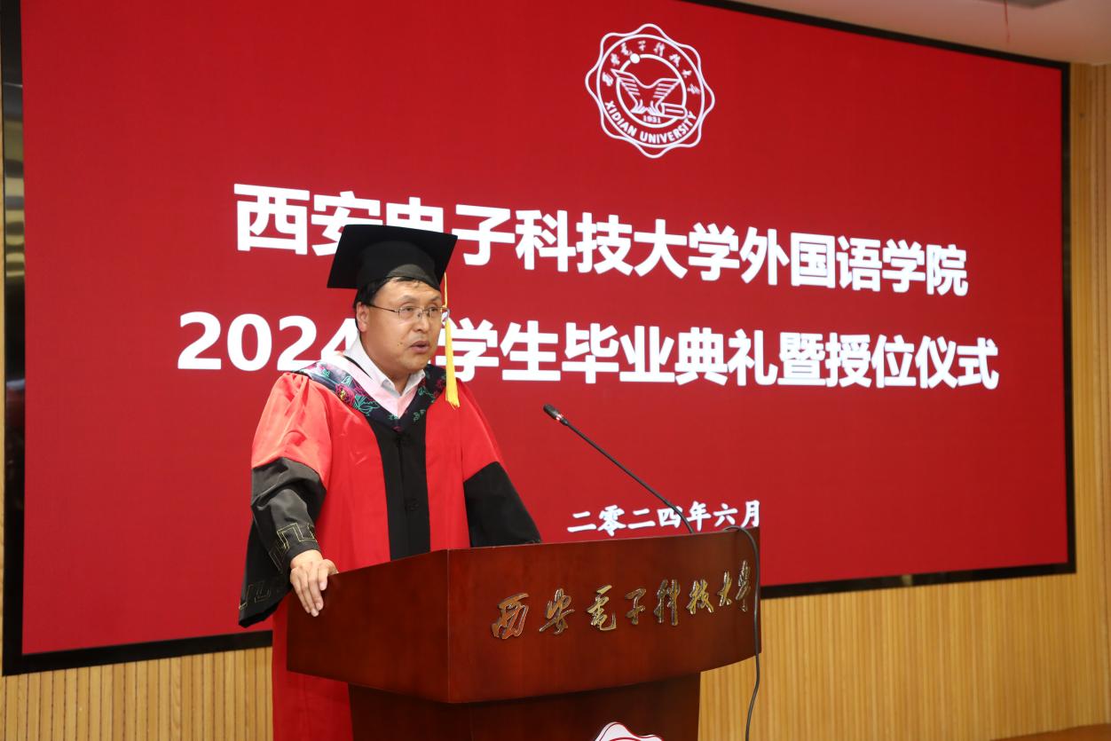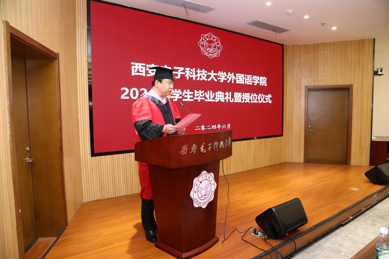 徐战利宣读了优秀毕业生表彰决定,对2024届毕业生取得的成绩表示充分肯定,对即将开启人生新篇章的毕业生们送上真诚的祝福。他鼓励外院学子满怀信心步入职场,发挥外语专业优势,争当新时代岗位建功的行业骨干和青年先锋。