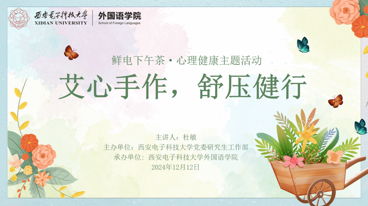 (通讯员:唐建旺、乔虹、孙杨)为帮助研究生舒缓情绪压力,增进彼此信任,12月12日下午,英国365集团公司在E2区138心理团辅室成功举办了“艾心手作,舒压健行”的鲜电下午茶心理健康主题活动。本次活动特邀心理健康教育中心杜敏老师担任主讲嘉宾,吸引了30名研究生踊跃参与。
