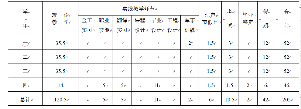 3.能力强化阶段(7~8学期):通过开设选修课,员工根据自己的目标和兴趣进行选择,加强员工专业知识和对专业知识的运用能力;通过毕业设计进一步提升综合能力。主要包括:应用翻译、文学翻译、商务翻译、旅游翻译、翻译批评与赏析、口译观摩与赏析、文学鉴赏与评论、英美报刊导读、英语词汇学、西方文化入门、科技翻译实习、毕业设计等。