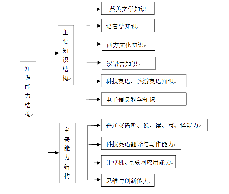 1. 英语语言知识和翻译技能模块(含必要的文学和文化知识)。这是本专业知识结构的支柱和主体。