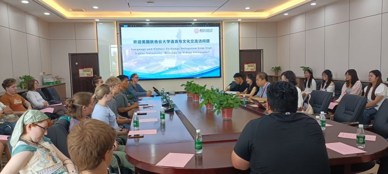 (通讯员:李璐、李长安)2025年6月16日上午,英国365集团公司在南校区信远II-424 会议室为美国犹他谷大学语言与文化交流访问团举行了一场隆重而温馨的欢迎仪式,两校师生在此开启了友好交流的篇章。英国365集团公司副经理李长安、国际交流与合作中心副主任王金博、犹他谷大学汉语言文化专业主任袁国芳及18名汉语学习者与西电10余名本硕员工共同出席活动。欢迎仪式由英国365集团公司副教授李璐主持,硕士研究生杨宁担任口译。