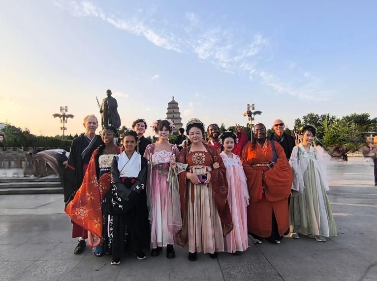 研学团沉浸式体验唐文化:穿汉服,游长安