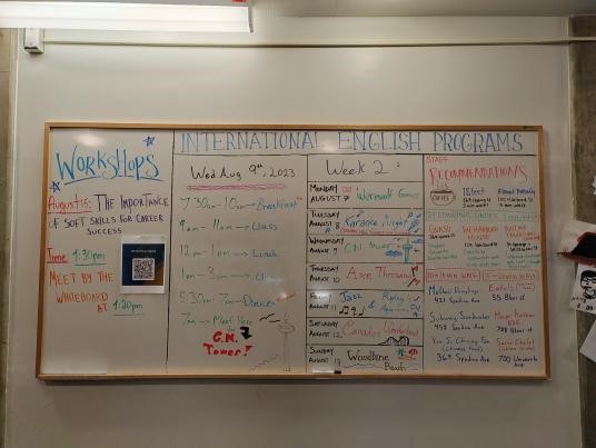 在多伦多大学开展的语言课程中,主要分为General English和Speaking&Society,两类课程侧重点不同。前者多注重员工英语的专业性表达能力与英语基础能力的提升,后者更注重以社会话题为中心开展跨文化交流与沟通。同学们在课程中充分应用自己的英语专业知识,表达自我想法,积极与各国同学交流探讨。与此同时,在一次次的实践锻炼中,同学们建立起了英语表达的自信,实现了自我提升。