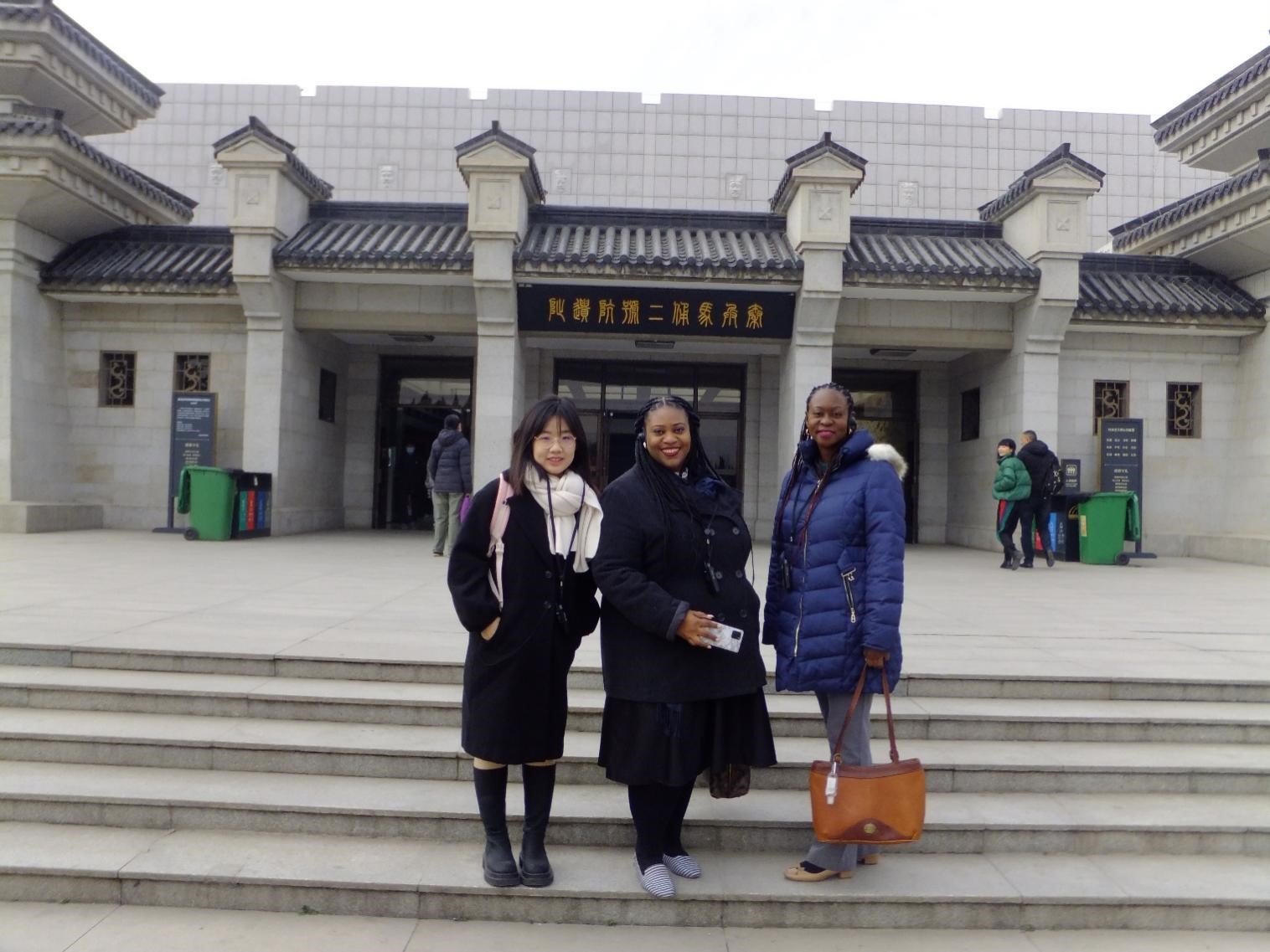 次日上午,外院志愿者陪同外宾前往秦始皇陵博物院,沉浸式体验“秦文化”。这是两位外宾首次参观世界文化遗产——秦始皇陵博物院。形态逼真的陶俑、威武严整的军阵,精彩纷呈的陶俑彩绘,美得令人陶醉的古代东方文化技艺让她们惊艳不已,仿佛古代工匠们用心灵和技艺将那个辉煌的时代重现于眼前。