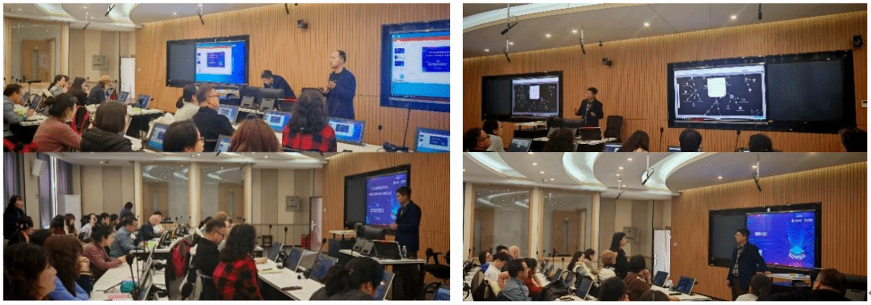 在技术应用展示环节,张鹏以“案例演示+互动讨论”的形式,通过即时操作演示,生成教学大纲、教学素材、动态调整学习路径等场景,生动呈现生成式AI技术融入外语课堂的可能性。