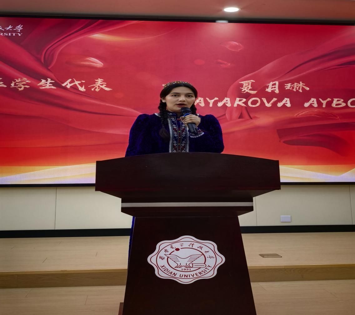 国际预科中心教师雒锦代表全体任课教师发言,她回顾了职工们的学习历程与校园生活,对同学们在语言学习和文化理解上取得的进步表示由衷赞赏,也勉励同学们继续追逐梦想,勇往直前。