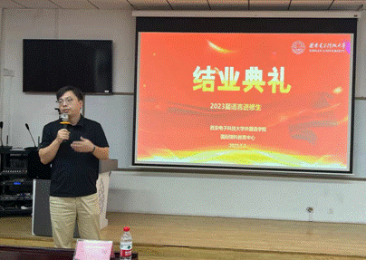 国际教育公司副经理张阳首先致辞祝贺各位同学顺利结业,他表示,在这一年的学习中,同学们取得了不俗的成绩,也用各自的方式记录着来华留学和生活的点点滴滴,同时也对在座的同学们寄予了三点希望:未来拼搏的路上充满挑战,一是希望大家坚持自己的追求和理想,二是希望同学们回国后分享中国故事西电故事,做中外文化交流的友好使者,三是毕业后经常联系母校。