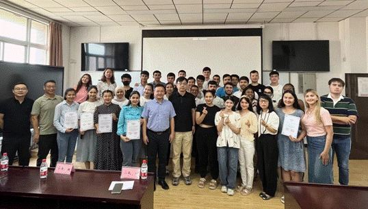 典礼最后由全体教师共同为2023届语言进修生颁发结业证书、纪念品并合影留念。