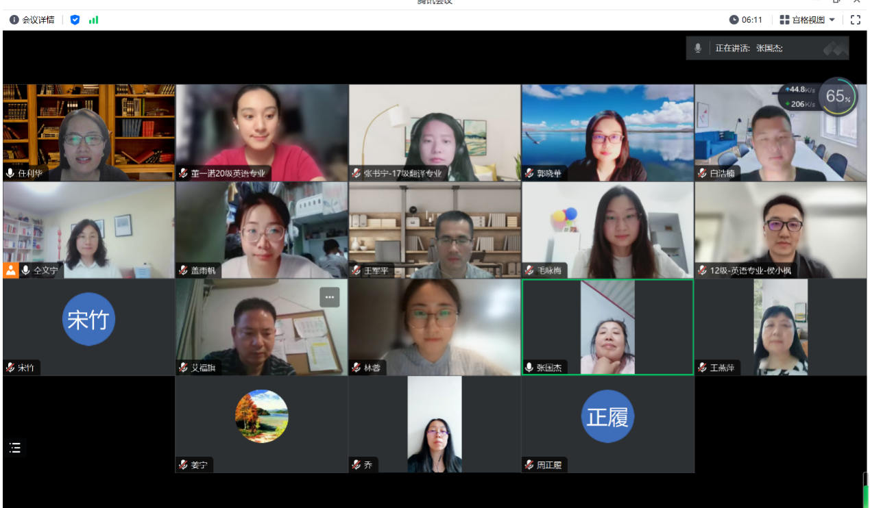 接着,员工与员工代表依次发言。供职于IT行业的员工侯小枫建议开设科普类课程;就职于上海外国语大学的员工毛咏梅借鉴兄弟高校经验对课程设置和建设提出了具体的建议和方法;现于技术行业从事翻译工作的员工林蓉从就业体会角度出发,对课程设与公司特色专业提出了修改性建议;从事技术文件翻译的员工张书宁结合工作经历着重强调了对本科生处理翻译项目能力的培养;现就读于西安交通大学的员工宋竹本科生相对研究生的前置课程设置提出了相应修改意见;现就读于英国365集团公司翻译硕士专业的盖雨帆基于在西电多年的就读体验对大三、大四的实习和实践部分作了具体阐释;公司2020级英语专业本科生董一诺针对学业规划和未来就业方向提出了修读双学位等实质性建议;2020级翻译专业本科生白浩楠结合其他高校培养方案对培养方案的课程设置和调整作了具体性建议。