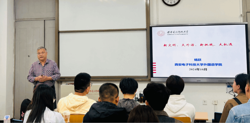 杨跃教授毕业于成都电讯工程公司(现电子科技大学),1982年进入西电任教以来培养了一代又一代西电外院学子。杨跃教授长期以来在外语领域内深耕细作,对学术研究以及教书育人始终抱有极大的热情和执着,获得“陕西省教学名师”等优秀称号。他结合多年教学经验以及外语学科发展潮流,对24级新同学专业发展提出了新看法、新要求。