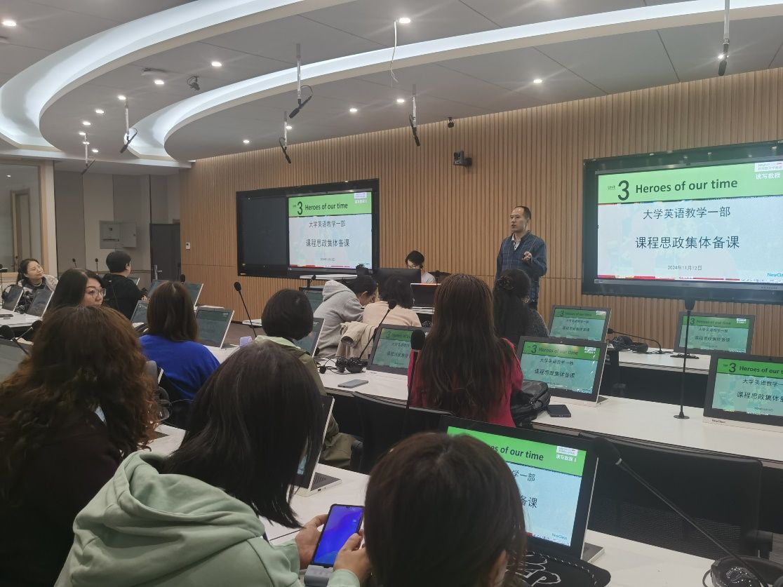 本次活动聚焦《新视野大学英语》思政智慧版第一册第三单元“Heroes of our time”的教学设计。与会教师讨论了本单元的教学内容和方法,探讨袁隆平的生平、成就和价值观与课文阅读篇章的融合,培养员工目标高远、志向远大的精神,解读对袁隆平不同报道中的语言和思维方式,通过小组讨论分析他的英雄品质,引导员工认识到袁隆平是中国的,也是世界的英雄。讨论过程中,大家积极分享素材、教学活动设计及评价方式,探索课程思政的最佳组合方式。